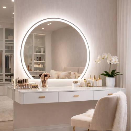 Ter um espelho Meia Lua iluminado com LED e acionamento a touch screen deixa qualquer ambiente com iluminação agradável, mais sofisticado e elegante.