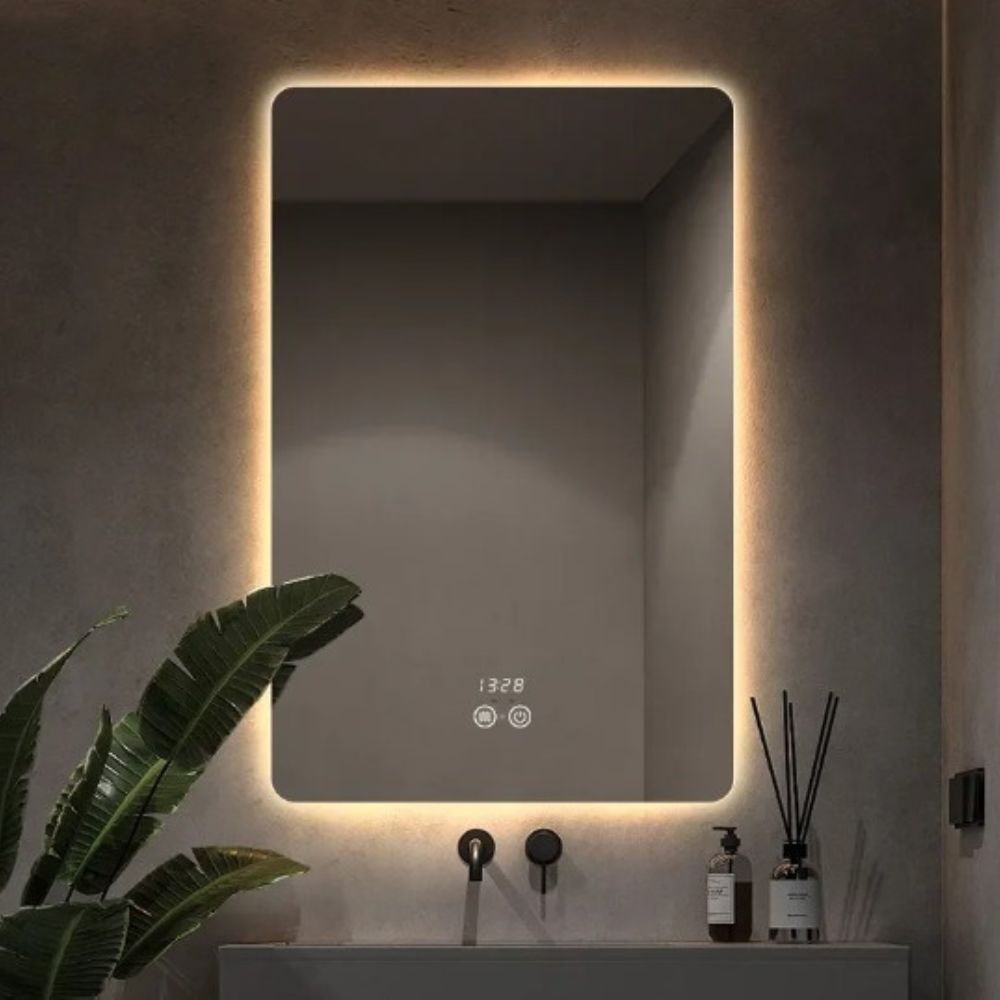 Ter um espelho iluminado com LED e acionamento a touch screen e Relógio deixa qualquer ambiente com iluminação agradável, mais sofisticado e elegante.